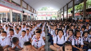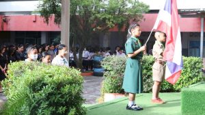 ก่อนเริ่มกิจกรรมการเรียนการสอน คณะผู้บริหาร คณะครู บุคลากร และนักเรียนทุกระดับชั้น ได้ร่วมกันยืนถวายความอาลัยและน้อมรำลึกในพระมหากรุณาธิคุณอันหาที่สุดมิได้ แด่ สมเด็จพระนางเจ้าสิริกิติ์ พระบรมราชินีนาถ พระบรมราชชนนีพันปีหลวง ณ บริเวณเสาธงของโรงเรียน