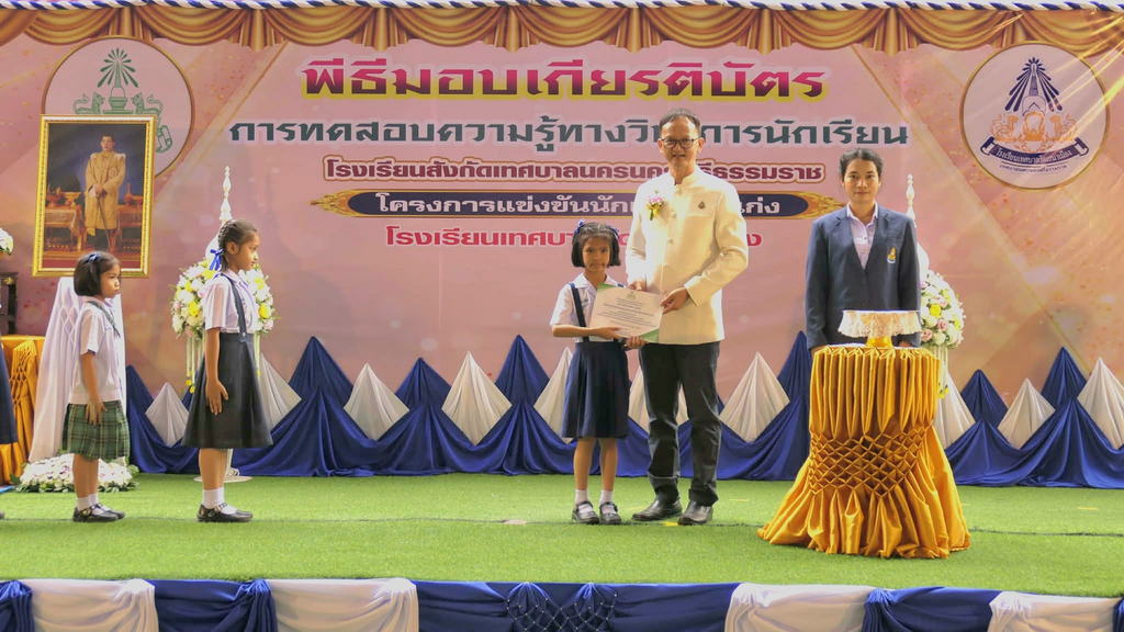 โดยได้รับเกียรติจาก ดร.กณพ เกตุชาติ นายกเทศมนตรีนครนครศรีธรรมราช เป็นประธานในพิธีและผู้มอบเกียรติบัตร เพื่อเป็นขวัญและกำลังใจให้กับนักเรียนระดับชั้นประถมศึกษาปีที่ 1 – 6 ที่มีความมุ่งมั่นตั้งใจศึกษาเล่าเรียน รวมจำนวนทั้งสิ้น 1,768 คน 🏆👏
