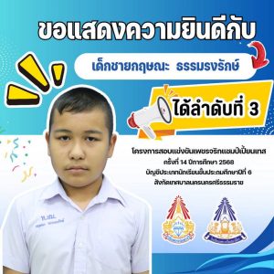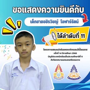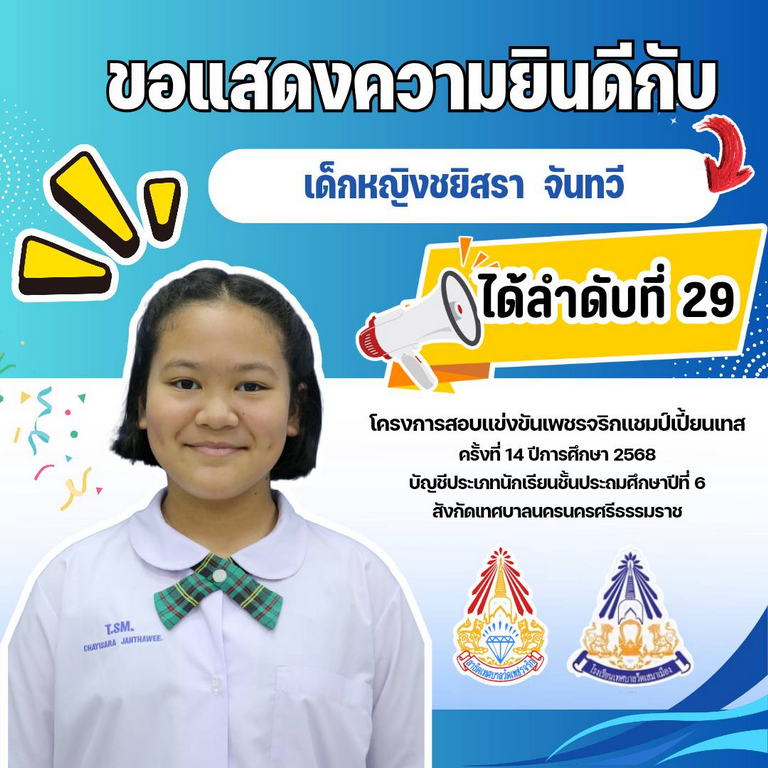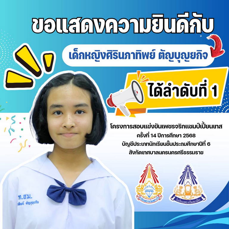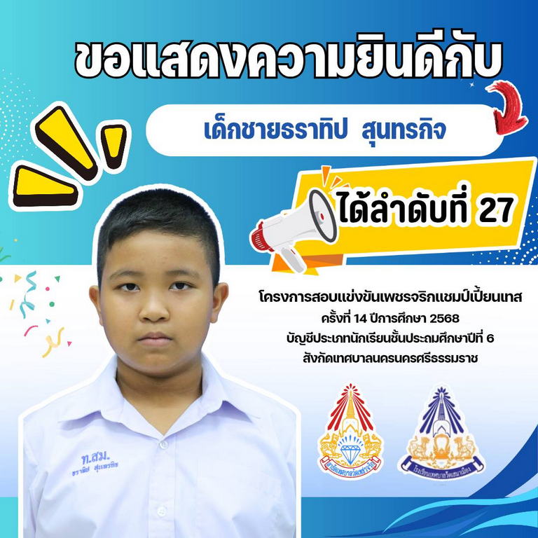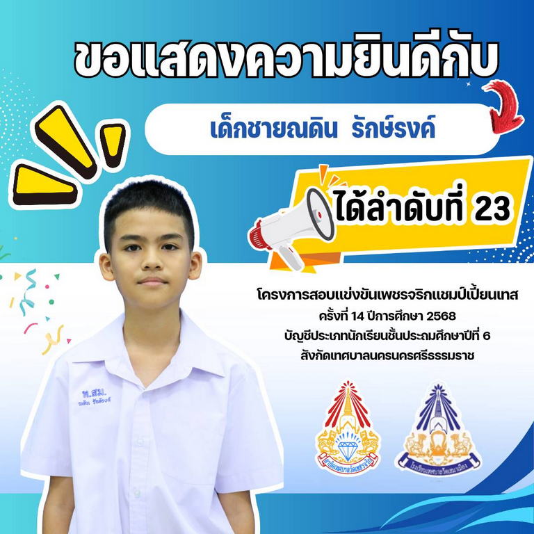 🏆 ประกาศความภาคภูมิใจ! ป.6 สร้างผลงานยอดเยี่ยมในการแข่งขัน “เพรชจริกแชมป์เปี้ยนเทส ครั้งที่ 14” 🏆