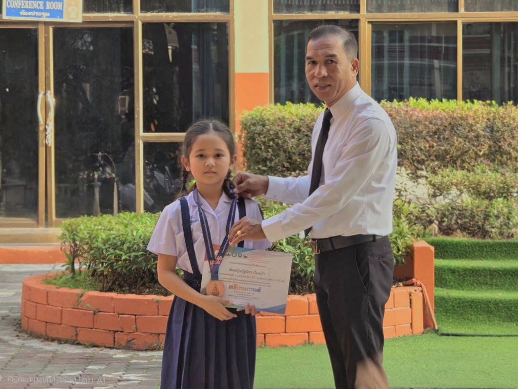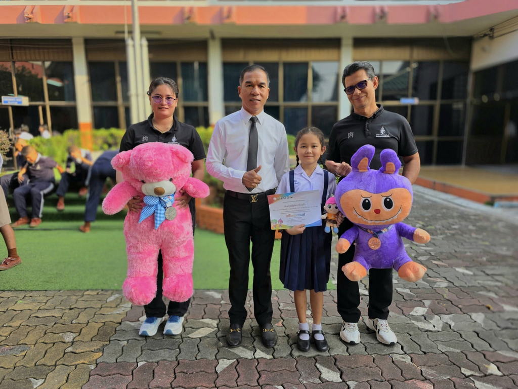 นอกจากเหรียญรางวัลและเกียรติบัตรแล้ว น้องมาย่ายังได้พาน้อง “ศรีสะเกษ” (มาสคอทหัวหอม) กลับบ้านเราด้วย! เก่งมากๆ เลยค่ะคนเก่ง พวกเราชาวเสมาเมืองภูมิใจในตัวหนูที่สุด 💙🤍