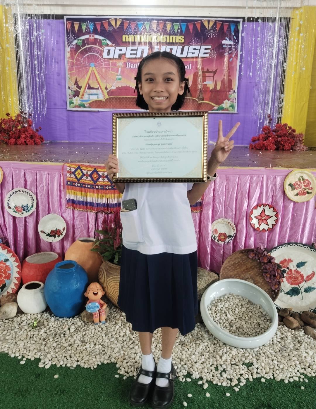 • 🥈 รางวัลรองชนะเลิศอันดับ 2: ด.ญ.ธารารัตน์ ดวงแก้ว (ชั้น ป.5/1)