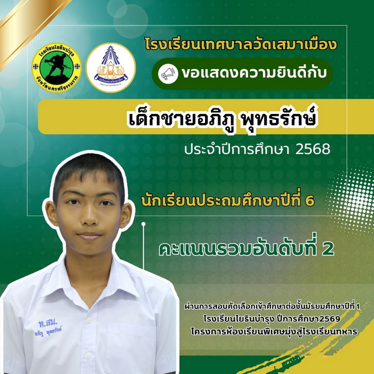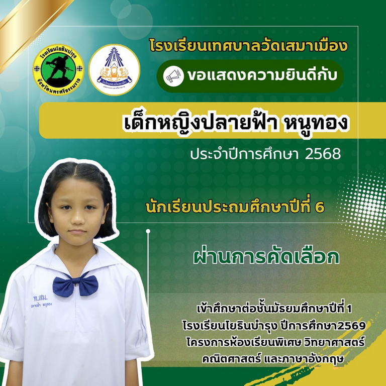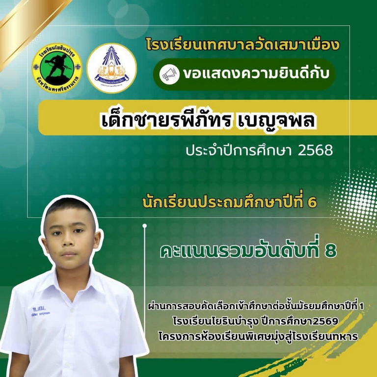 ความสำเร็จในวันนี้คือความภาคภูมิใจของพวกเราชาวเสมาเมือง ขอให้นักเรียนทุกคนตั้งใจมุ่งมั่นตามความฝัน และเติบโตเป็นเยาวชนที่มีคุณภาพต่อไปครับ! 👏💙🤍