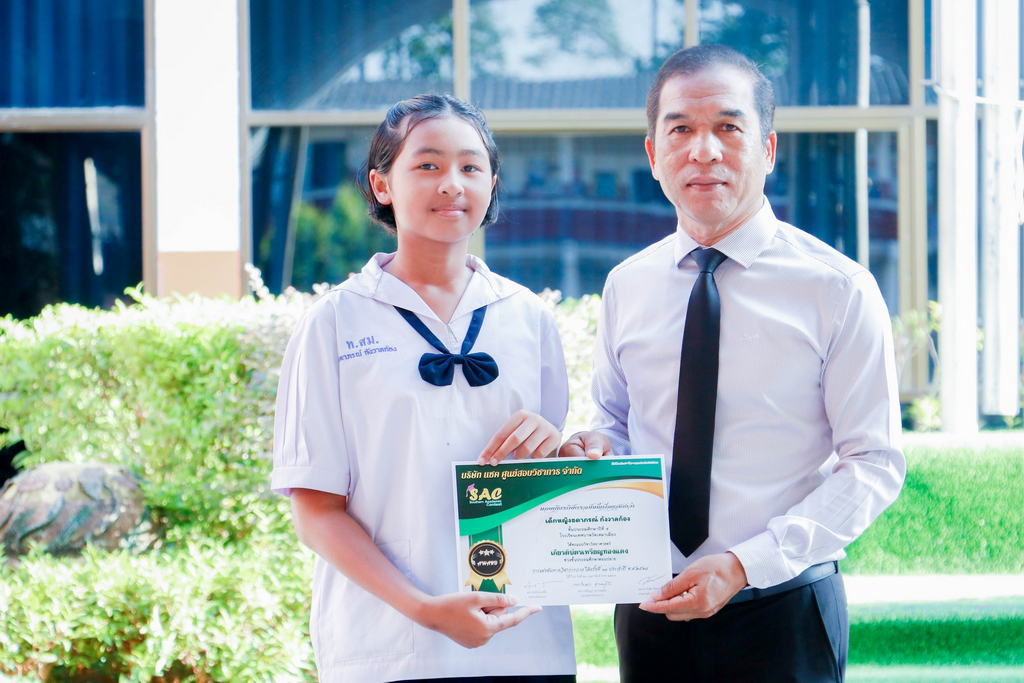 ท่านผู้อำนวยการ นายเกรียงไกร วุฒิมานพ ให้เกียรติมอบเกียรติบัตรให้กับนักเรียนที่สร้างชื่อเสียงและคว้ารางวัลจากการแข่งขันในสนามสอบต่างๆ ประจำปีการศึกษา 2568 🏫🎓