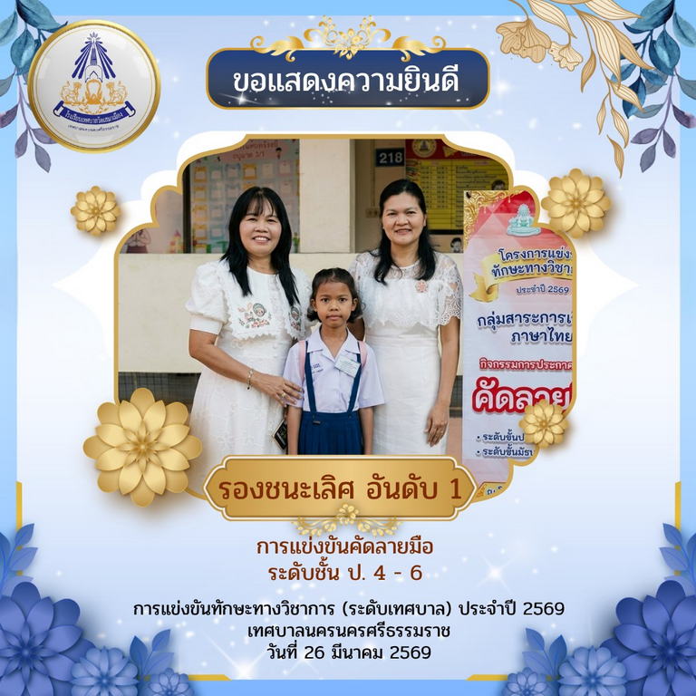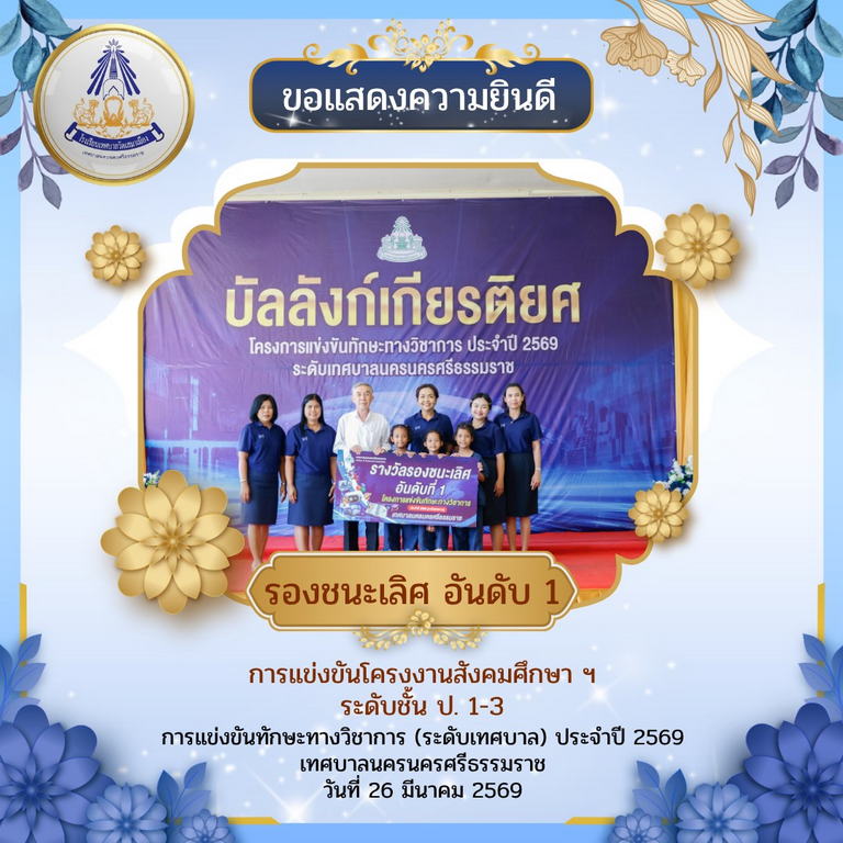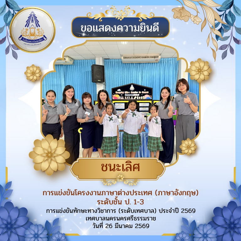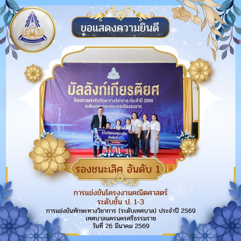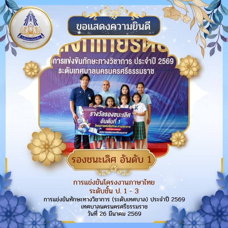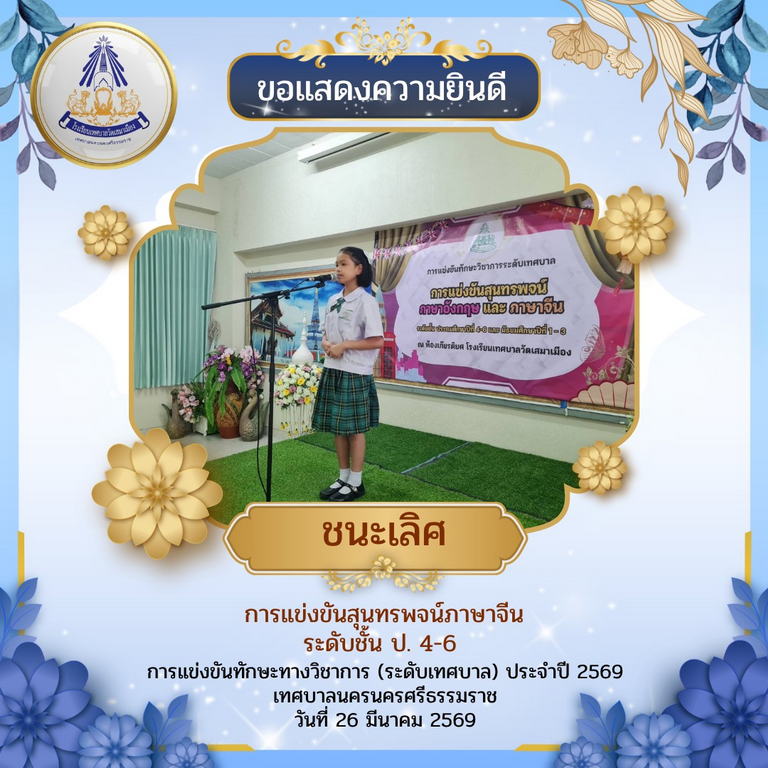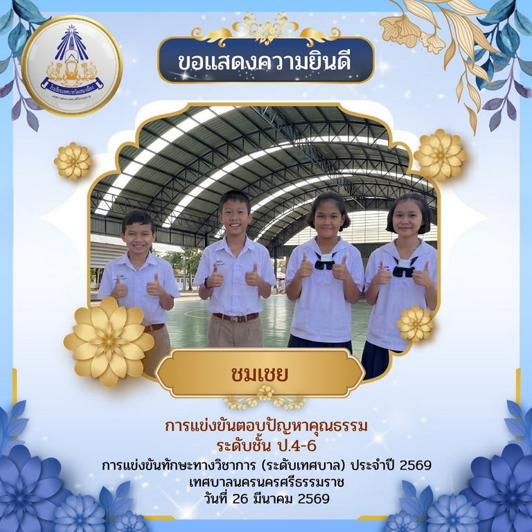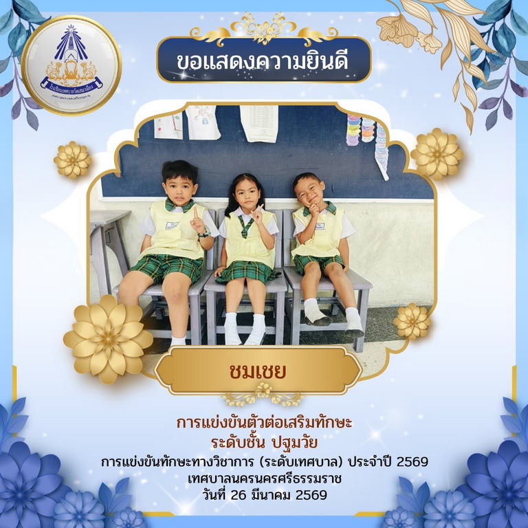 สรุปผลการแข่งขันทักษะทางวิชาการ (ระดับเทศบาล) ประจำปี 2569 ของโรงเรียนเทศบาลวัดเสมาเมือง บอกเลยว่าปีนี้ “ยอดเยี่ยมที่สุด!” เพราะพวกเราส่งนักเรียนเข้าร่วมแข่งขันทั้งหมด 30 รายการ และสามารถคว้า เหรียญทองมาได้ครบทั้ง 30 รายการ! 🏆และขอแสดงความยินดีกับรายการที่ได้ “ไปต่อระดับภาคใต้” รวมทั้งสิ้น 19 รายการ ดังนี้: