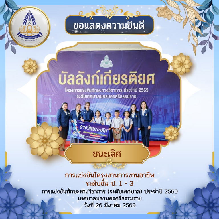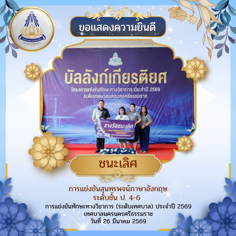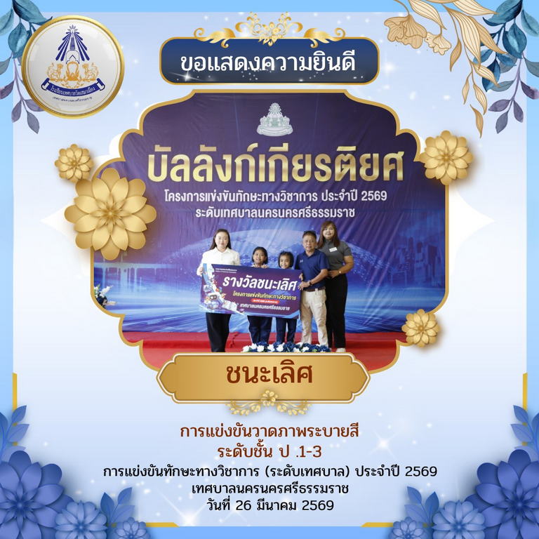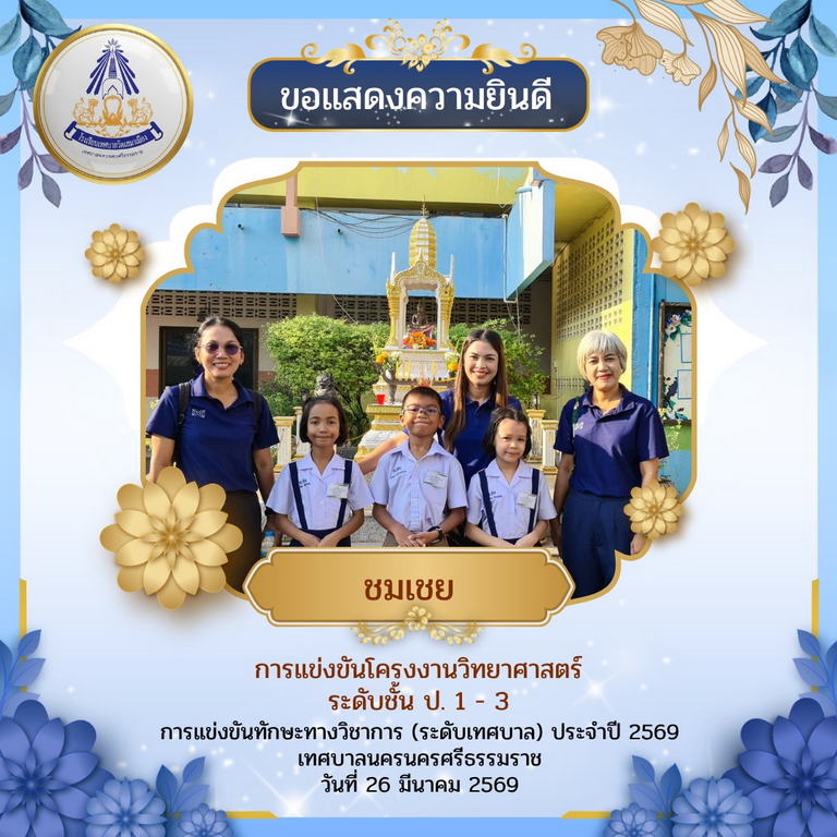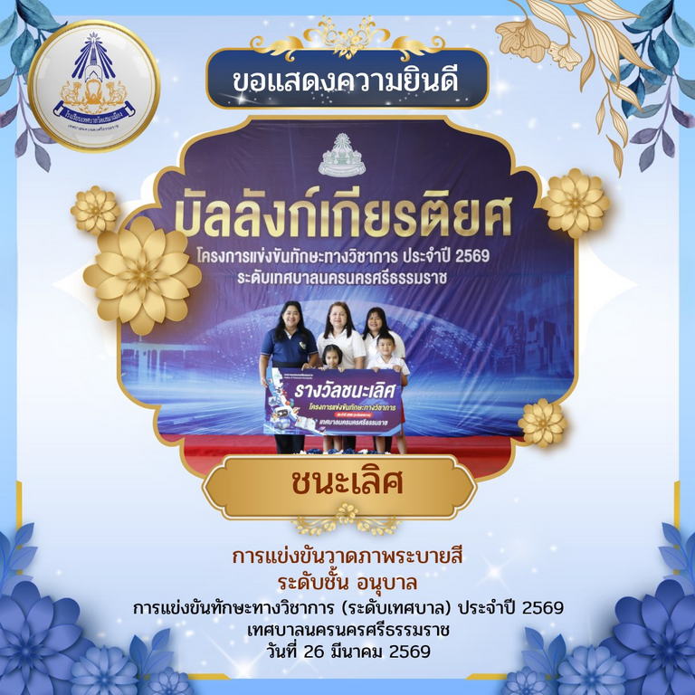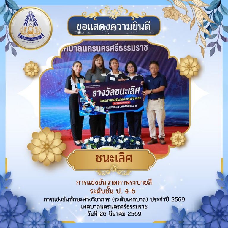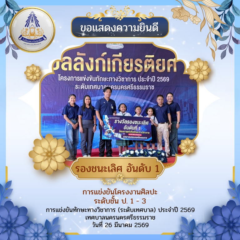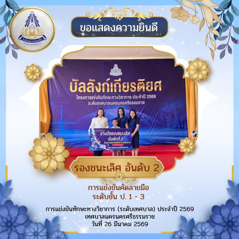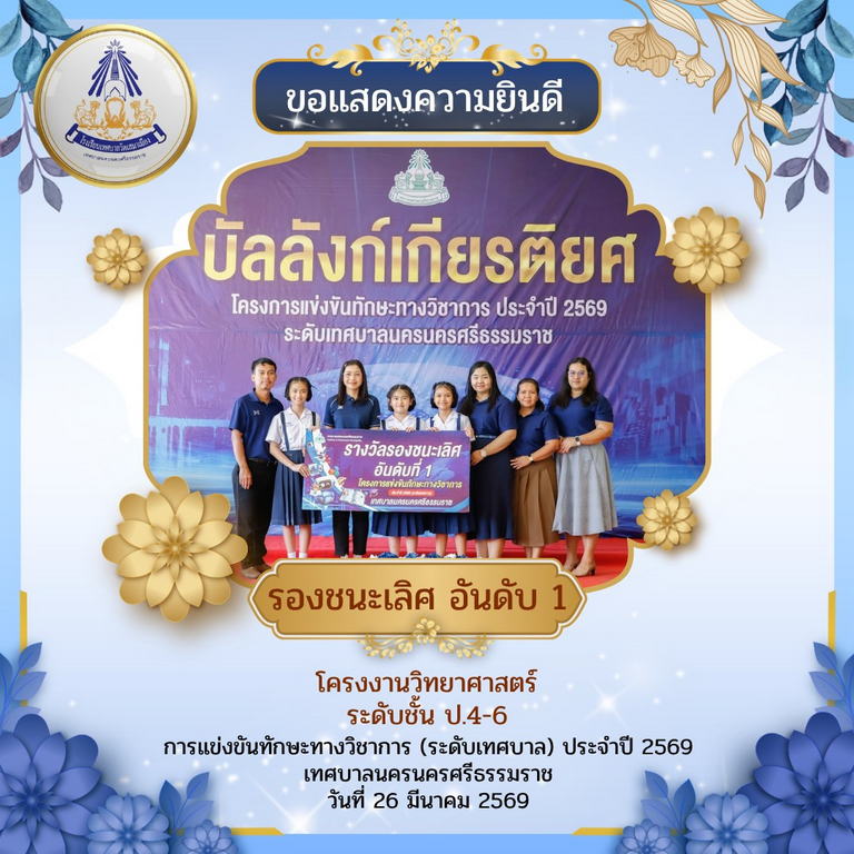 สรุปผลการแข่งขันทักษะทางวิชาการ (ระดับเทศบาล) ประจำปี 2569 ของโรงเรียนเทศบาลวัดเสมาเมือง บอกเลยว่าปีนี้ “ยอดเยี่ยมที่สุด!” เพราะพวกเราส่งนักเรียนเข้าร่วมแข่งขันทั้งหมด 30 รายการ และสามารถคว้า เหรียญทองมาได้ครบทั้ง 30 รายการ! 🏆และขอแสดงความยินดีกับรายการที่ได้ “ไปต่อระดับภาคใต้” รวมทั้งสิ้น 19 รายการ ดังนี้: